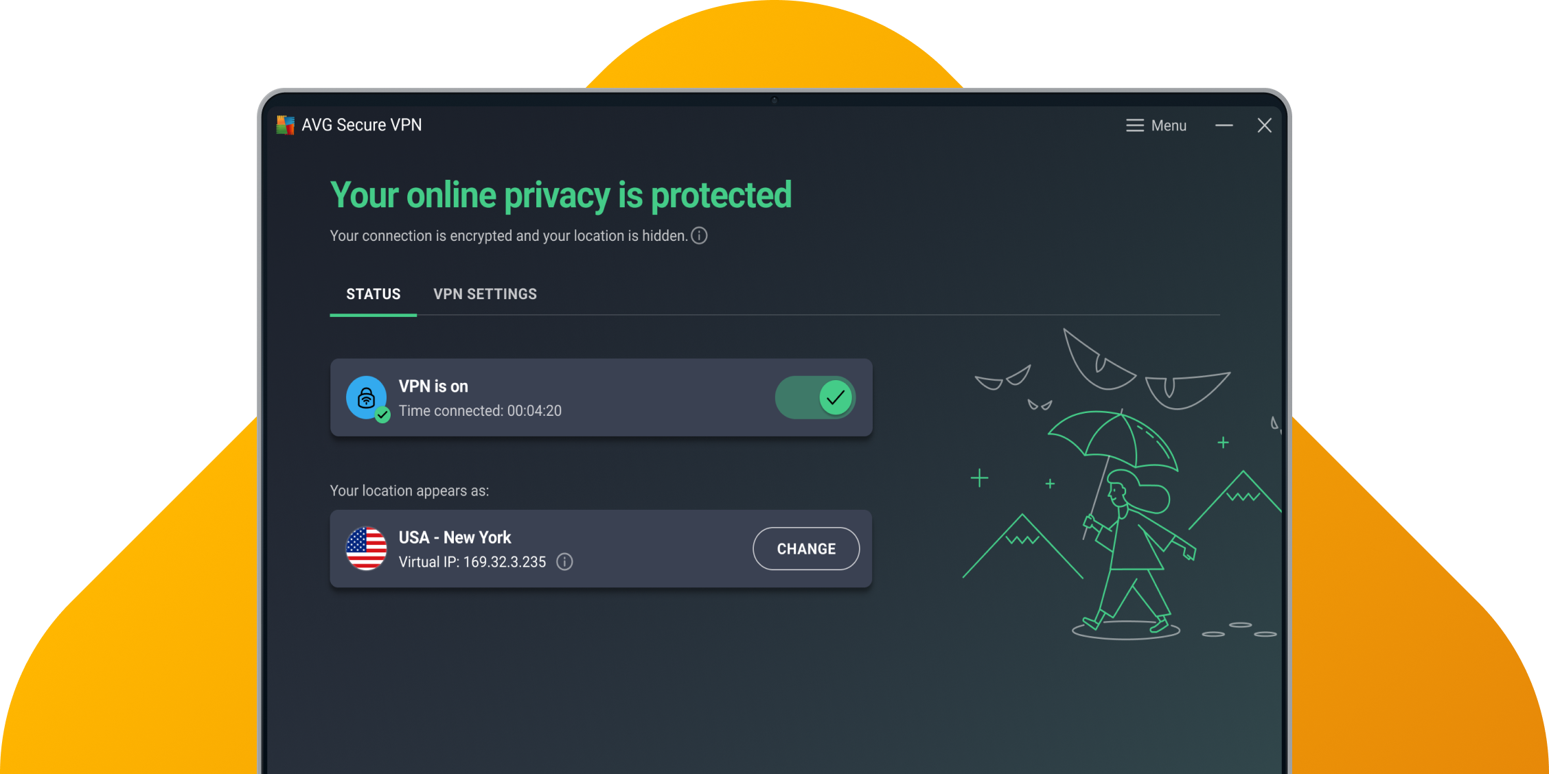 El uso de una VPN protege tu privacidad y refuerza tu seguridad. Al activar AVG Secure VPN, puedes ocultar tu ubicación y tus actividades en línea de los fisgones, además de bloquear a los hackers en las redes wifi públicas.