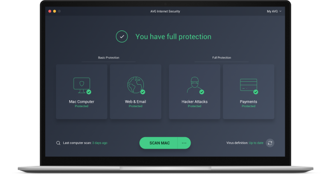 Fique mais seguro online. O AVG Internet Security ajuda a proteger o seu dispositivo e rede Wi-Fi contra ciberameaças, enquanto o AVG Ultimate oferece todas as funcionalidades incluídas no AVG Internet Security, além das nossas ferramentas de VPN, otimização do dispositivo e antirrastreamento.