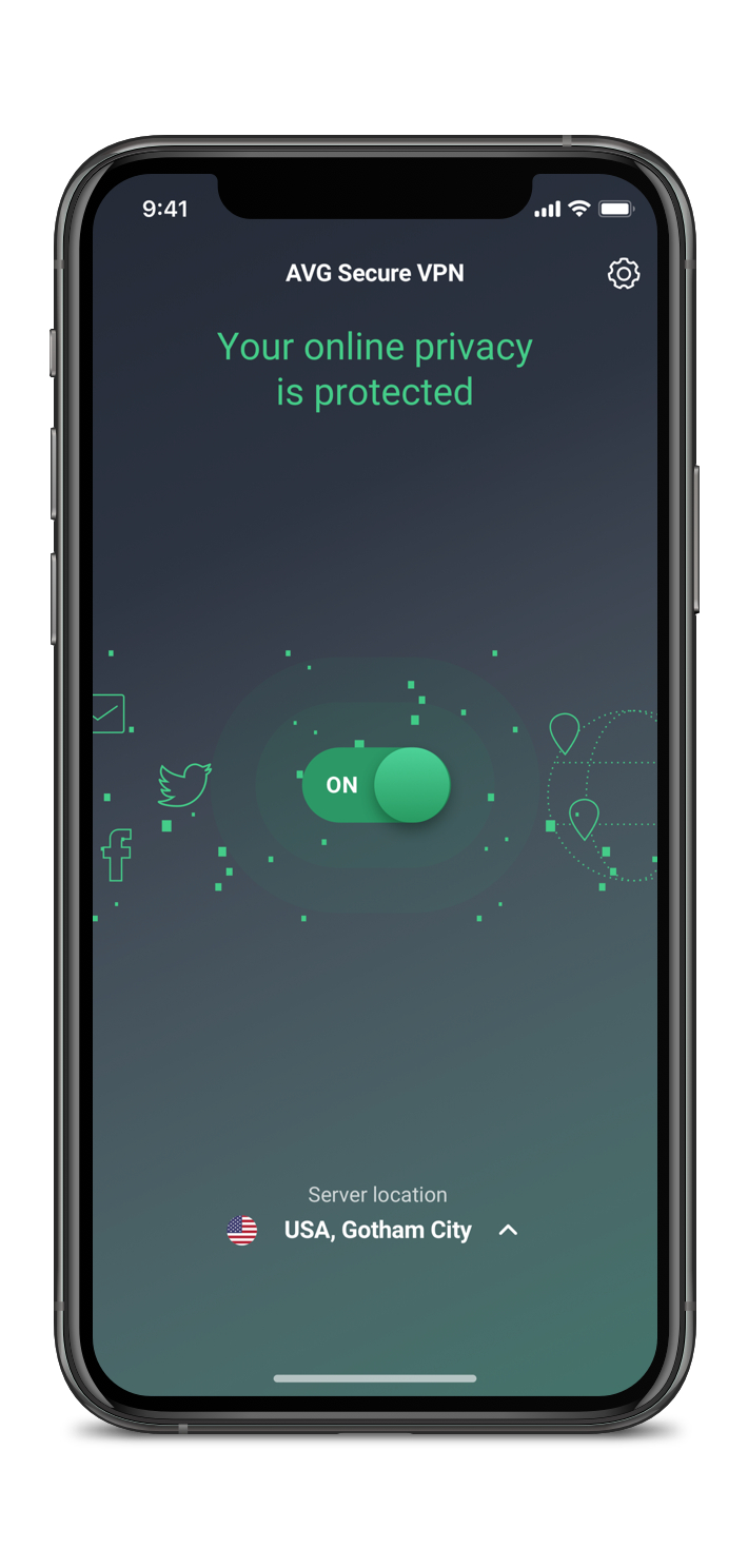 Inicie a aplicação Secure VPN e toque no botão para o ligar. Pode alterar a sua localização as vezes que quiser.